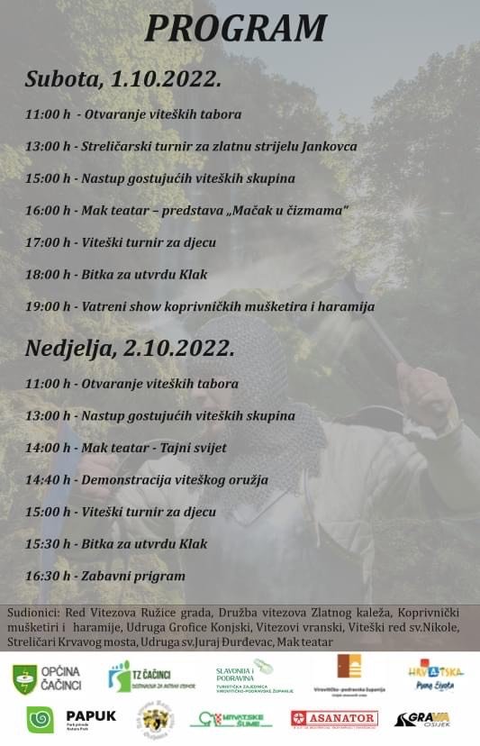 Organizatori turnira su i ove godine su Park prirode Papuk, Općina Čačinci te Red vitezova Ružica grada iz Orahovice.
